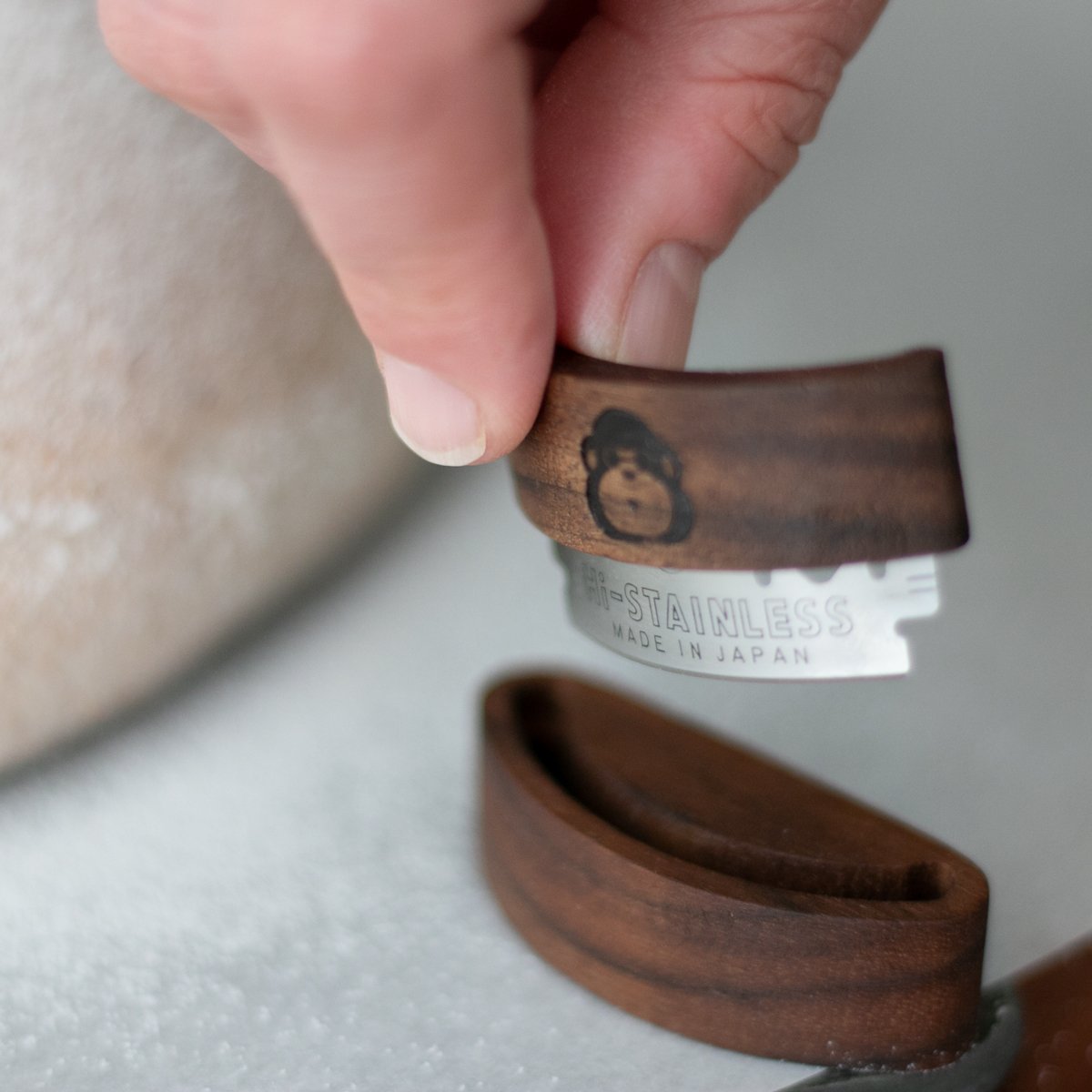 The Arc lame is the smallest lame in the world. It's graceful form is made of American Black Walnut and a base stand is included. As with our UFO lame, the Arc allows you to get intimate with your dough and is especially good at long slashes.